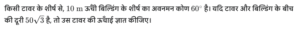 Next सुहास, एक पेड़ और एक 11.25 m ऊँची इमारत इस प्रकार अवस्थित (खड़े) हैं कि जमीन पर उनके आधार (feet) एक रेखाखंड हैं तथा पेड़, सुहास और इमारत के बीच में स्थित है। पेड़, सुहास से 7.5 m की दूरी पर और इमारत से 45 m की दूरी पर स्थित है। इसके अलावा, सुहास की आँखें, पेड़ का शीर्ष और इमारत का शीर्ष एक ही रेखा में हैं, तथा सुहास की आँखें जमीन से 1.8 m की ऊँचाई पर हैं। पेड़ की ऊँचाई (m में) ज्ञात कीजिए।