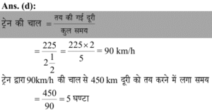 कोई ट्रेन एक समान चाल से 225 km की दूरी 2 1/2 घंटों में तय करती है। ट्रेन को उसी चाल से 450 km की दूरी तय करने में कितना समय ( घंटों में ) लगेगा ?