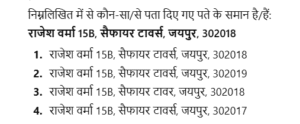 निम्नलिखित में से कौन-सा/से पता दिए गए पते के समान है/हैं :