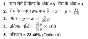 यदि, एक प्रतियोगी परीक्षा में, सैम द्वारा प्राप्त अंक, पीटर द्वारा प्राप्त अंकों से 19% कम हैं, तो ज्ञात कीजिए कि पीटर द्वारा प्राप्त अंक, सैम द्वारा प्राप्त अंकों से कितने प्रतिशत अधिक हैं? (दो दशमलव स्थानों तक सही)