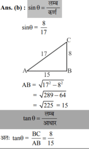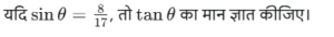 यदि $\sin\theta = \frac{8}{17}$, तो $\tan\theta$ का मान ज्ञात कीजिए।By shivwebdeveloper31@gmail.com / November 13, 2025 Question : Options : 17/15 8/15 15/17 15/8 correct answer : b)