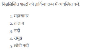 तार्किक क्रम आकार के अनुसार छोटे से बड़े की ओर है: