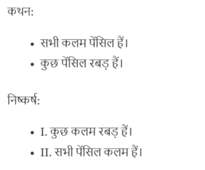 I. “कुछ कलम रबड़ हैं” – कलम का गोला रबड़ के गोले के साथ कोई अनिवार्य संबंध नहीं दिखाता है। इसलिए, यह निष्कर्ष गलत है।