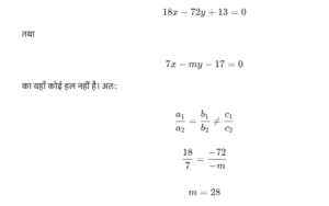 निम्नलिखित में से m के किस मान से समीकरण निकाय 18x – 72y + 13 = 0 और 7x – my – 17 = 0 का कोई हल नहीं होगा ?