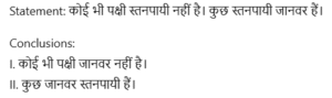 Statement: कोई भी पक्षी स्तनपायी नहीं है। कुछ स्तनपायी जानवर हैं।