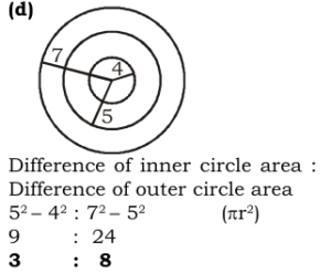 The radii of three concentric circles are in the ratio of 4 : 5 : 7. What is the ratio of the area between the two inner circles to that between the two outer circles ?