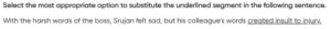 The correct sentence will be: With the harsh words of the boss, Srujan felt sad, but his colleague’s words added insult to injury.